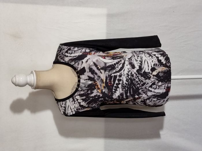 T-shirt manches longues femme noir et bariolé taille M. En très bon état. Envoi rapide et soigné. Négociable.