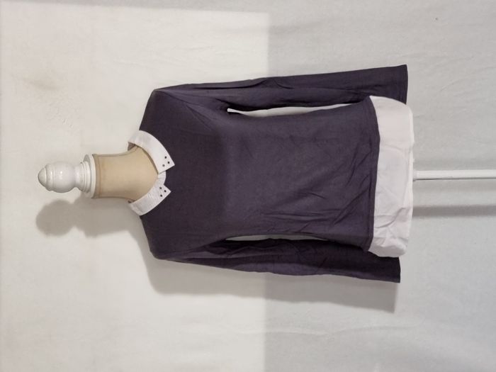 T-shirt manches effet chemise U Collection gris foncé et blanc taille 38. En très bon état. Envoi rapide et soigné. Négociable.