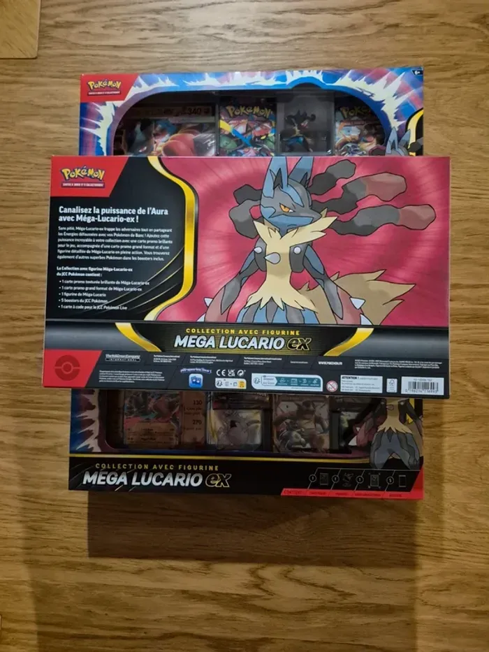 Lot de 3 coffret pokémon premium Figurine mega lucario ex me01 neuf scellé Fr