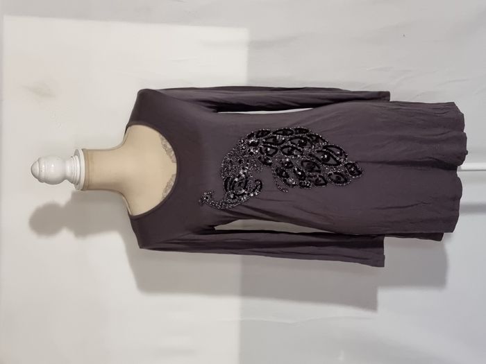 Tunique manches longues femme MS Mode gris foncé avec motif en sequins taille M. En très bon état. Envoi rapide et soigné. Négociable.