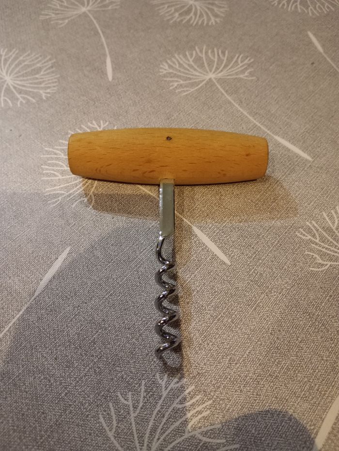 Tire-bouchon traditionnel avec manche en bois. Longueur : 10 cm. Très bon état.