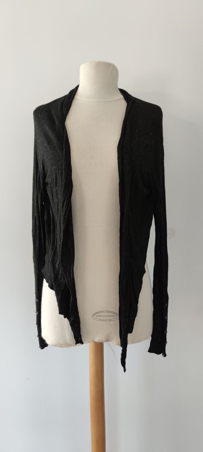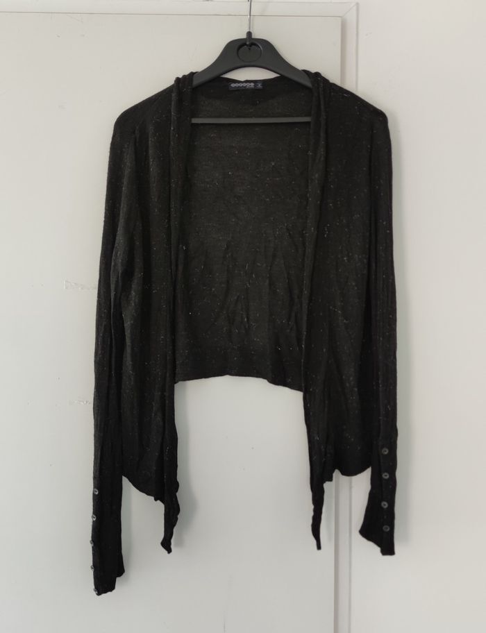 Gilet noir à manches longues pour femme, marque Bonobo, taille M. Idéal pour la mi-saison ou les soirées fraîches. En bon état, très confortable et facile à associer avec toutes vos tenues. Longueur manches : 64 cm Longueur totale : 66 cm Expédition rapide Prix : 5€