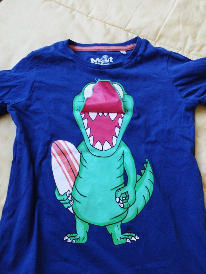 Vend t shirt de couleur bleu marine avec motif dinosaure de la taille 6 ans en très bonne état