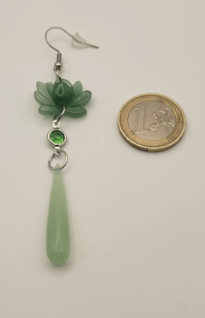 BOUCLES D'OREILLES PENDANTES LOTUS GOUTTE D'EAU VERT ! NEUVE ! - photo numéro 4