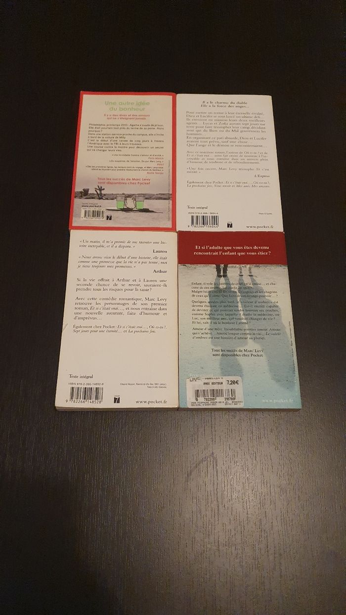 Je vends ce lot de 4 livres de l'auteur Marc Levy : Une autre idée du bonheur Vous revoir Sept jours pour une éternité Le voleur d'ombre