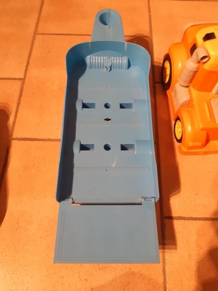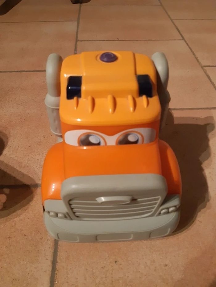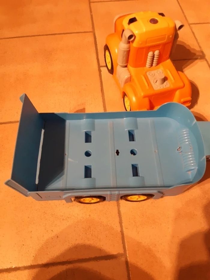 Camion, remorque avec plateau arrière qui s'abaisse, la remorque s'accroche au camion, et voiture cars dès 3 ans, en parfait état, longueur de chaque véhicule 25 cm 5 euros Envoi rapide et soigné