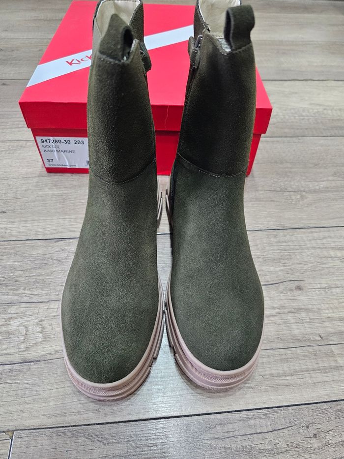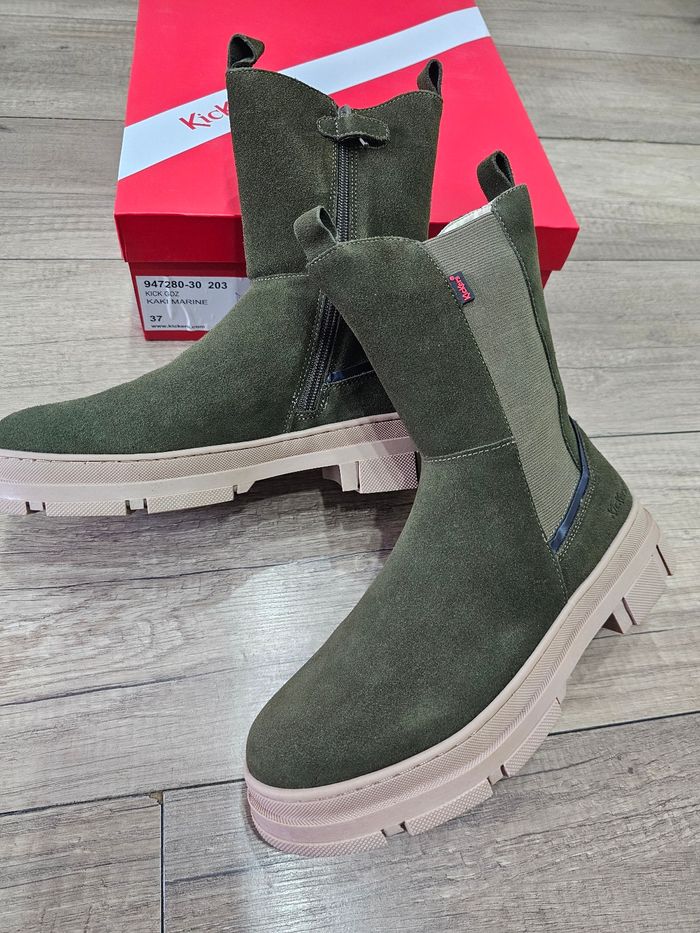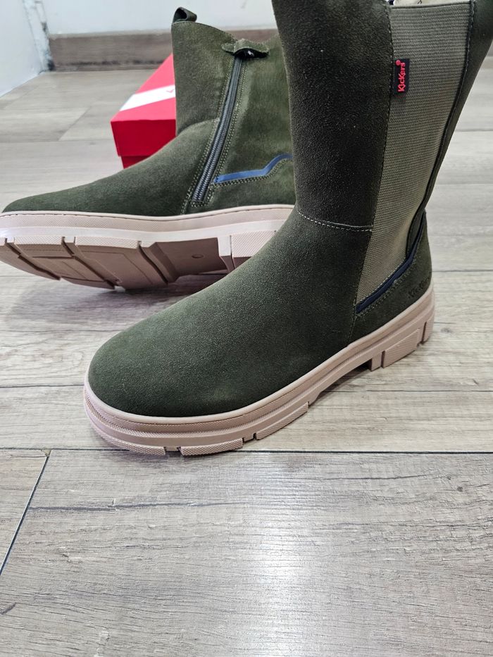 Très belles bottines femme en cuir, marque kickers, pointure 37, kaki