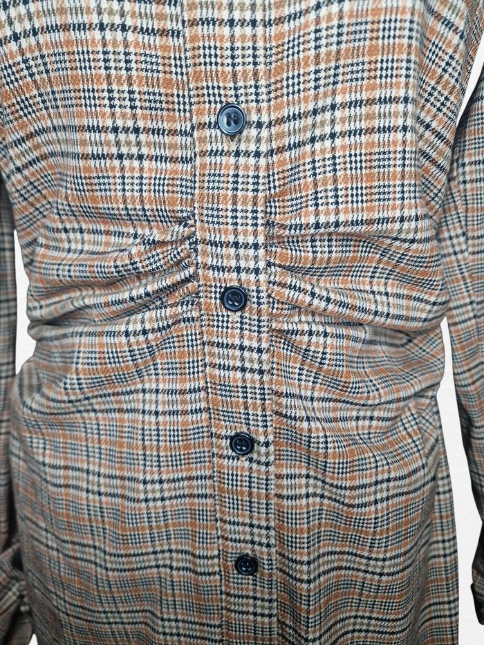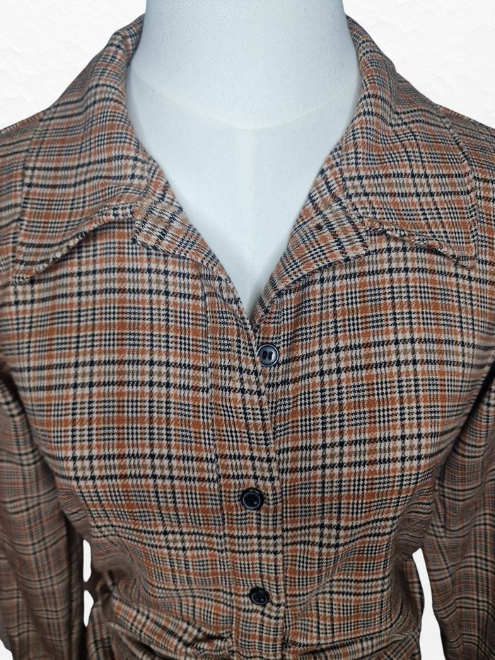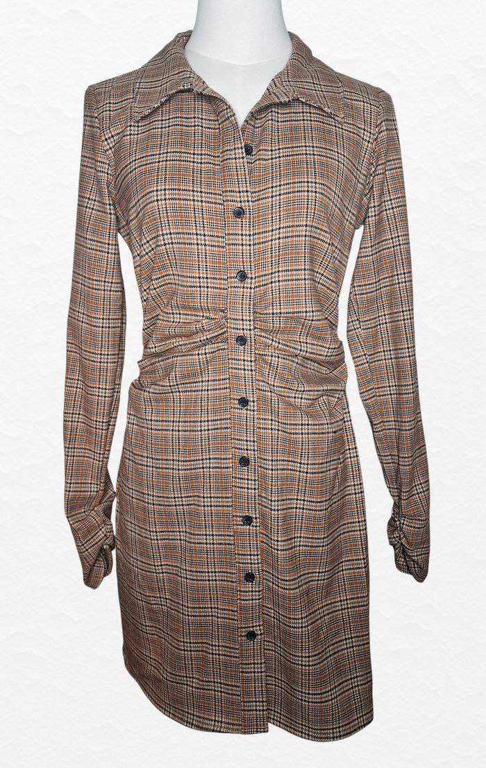Cette robe Zara en taille S est une pièce idéale pour un look chic et décontracté. Son motif à carreaux marron apporte une touche vintage tout en restant moderne. Confortable et facile à porter, elle s'adapte aussi bien à une journée au bureau qu'à une sortie entre amis. - Taille : S - Couleur : Marron - Marque : Zara - État : Très bon - Matière : 63% polyester, 33% viscose, 4% élasthanne - Coupe : Ajustée avec fronces à la taille pour souligner la silhouette - Détails : Boutons sur toute la longueur, col chemise, manches longues, poignets froncés/plissés Pour un style réussi, associe-la à des bottines en cuir et un trench beige. Un sac en bandoulière complétera parfaitement cette tenue automnale. Expédition rapide Sélection vérifiée