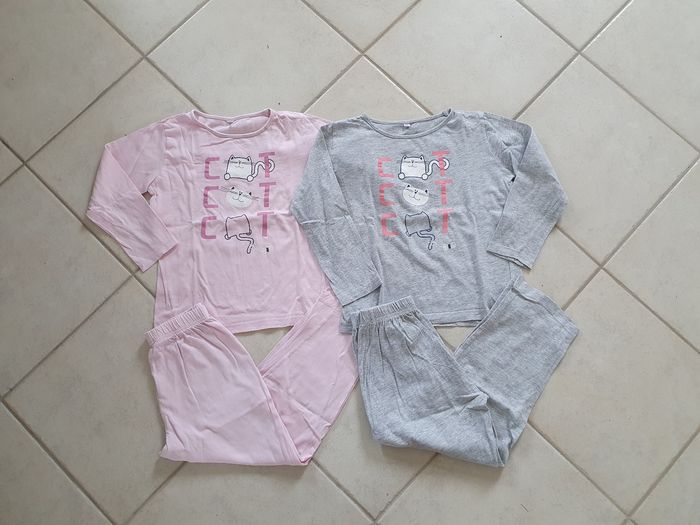 A vendre lot de 2 pyjamas, motifs chat. Taille 6 ans. Le gris est en très bon état, le rose a des petites tâches sur la pantalon (voir photo).