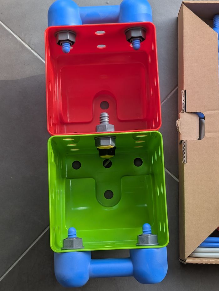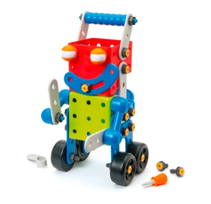 Celèbre set de construction Robot Buildi de la marque Oxybul Éveil et Jeux . Ce jeu est parfait pour développer la motricité fine, l'habileté et l'imagination de votre enfant. Il assemble les grandes pièces avec des vis et des écrous adaptés aux petites mains.