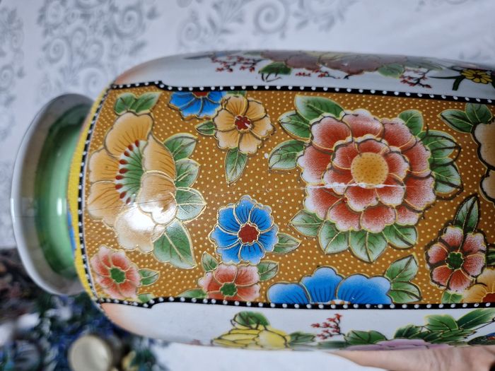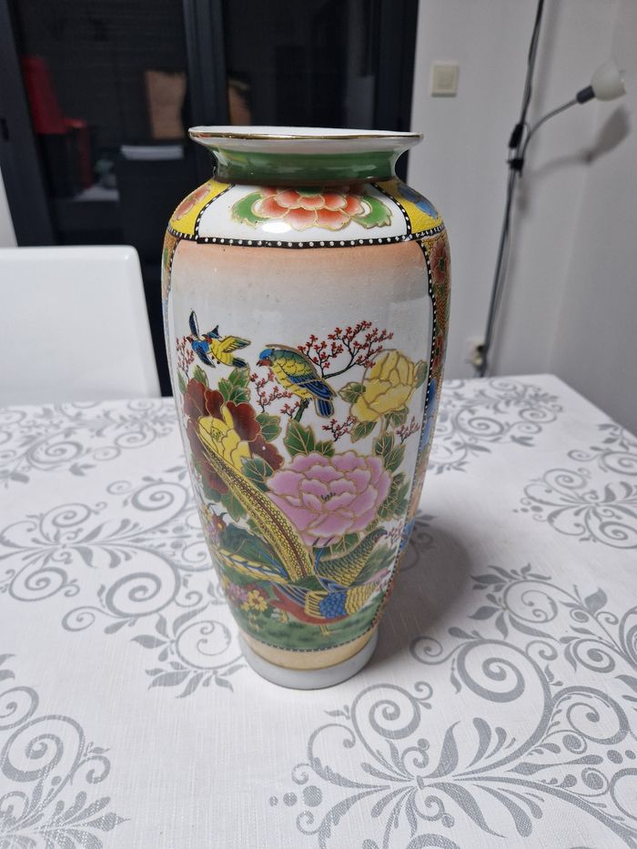🏺 Superbe vase en céramique décoré de fleurs colorées et d’oiseaux exotiques, dans un style asiatique raffiné. Idéal pour une déco élégante et pleine de charme. Petite fissure fine (voir photo), mais reste très joli en décoration. 💐 Parfait en vase ou objet déco 📦 Envoi rapide et soigné