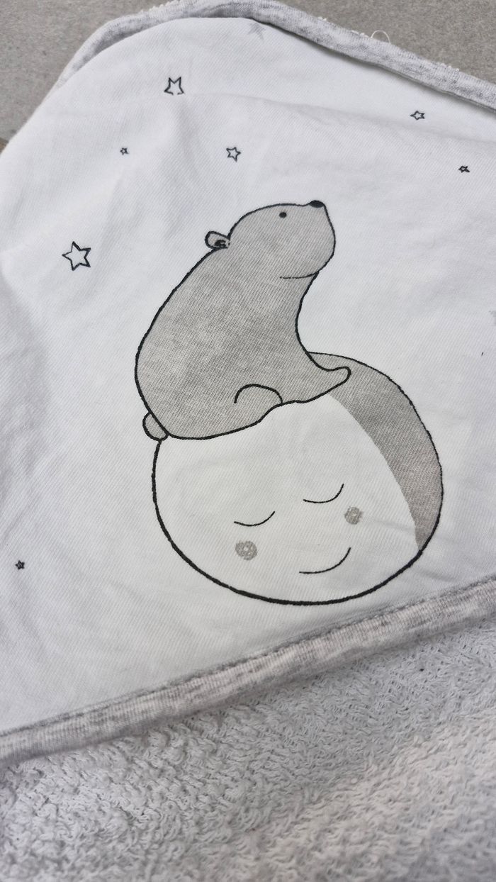 Coloris blanc avec liseré et motifs gris. Ourson sur la lune et sur un nuage. Très peu servi. 100% coton. D'autres articles de puériculture dans mon dressing ainsi que livres, jouets, vêtements de 6 à 36 mois. N'hésitez pas à faire des lots ! 😉