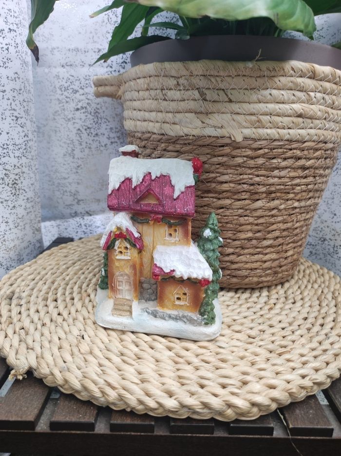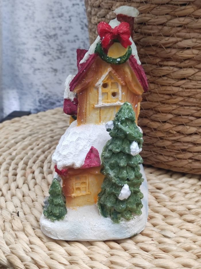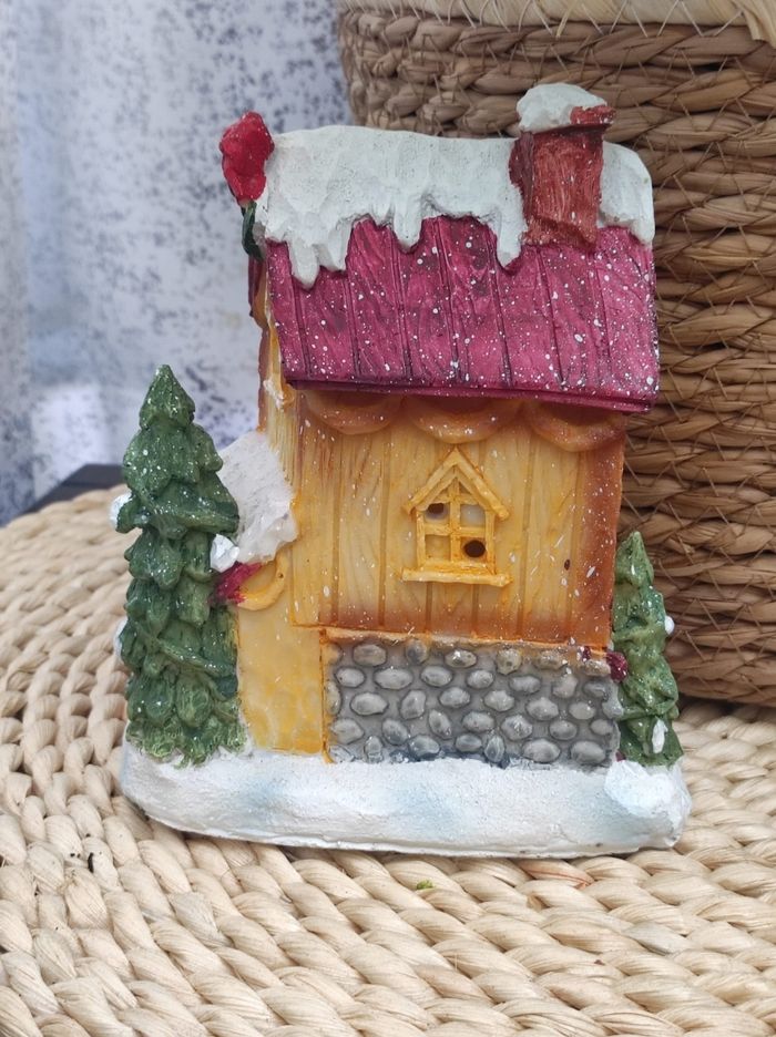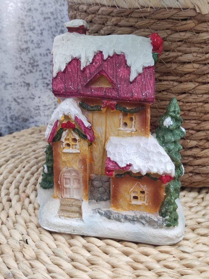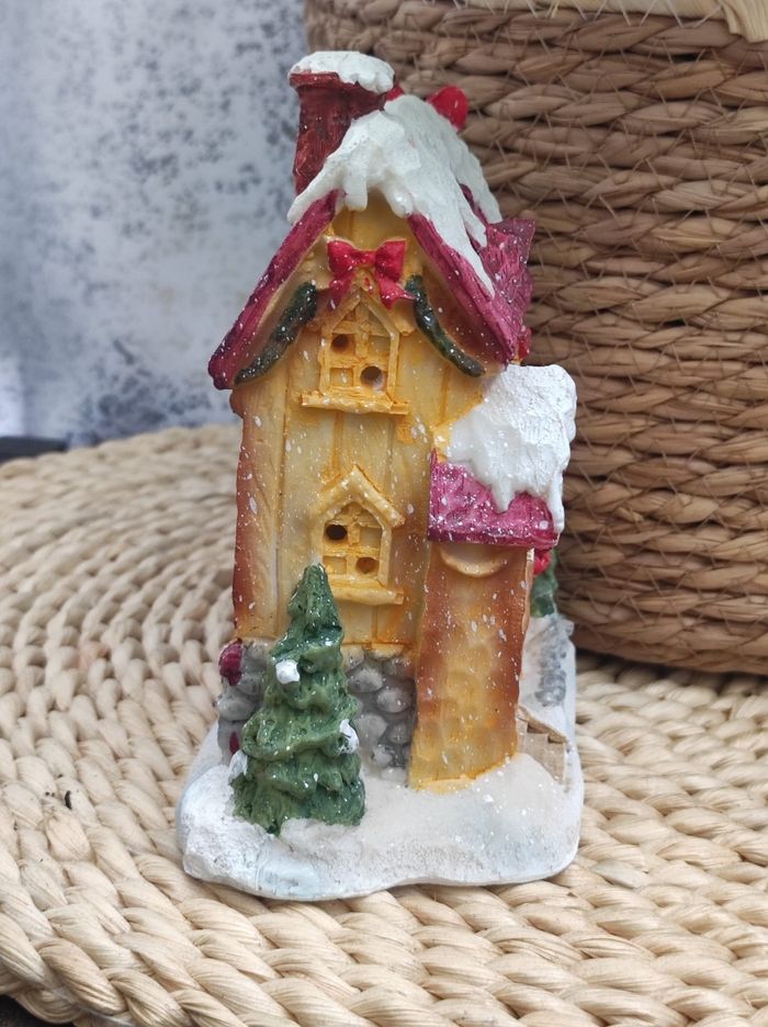 Jolie maison en résine pour Noël Dimensions 14,5 cm de hauteur. 13x8 cm de largeur ( partie du dessous).