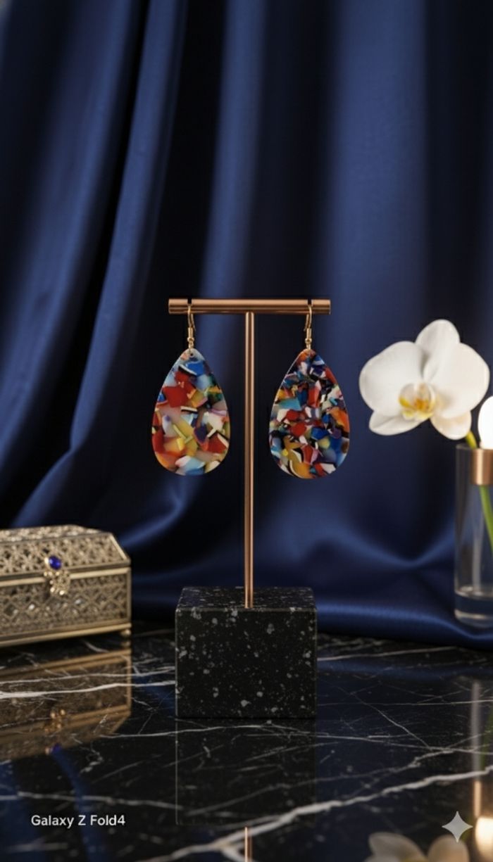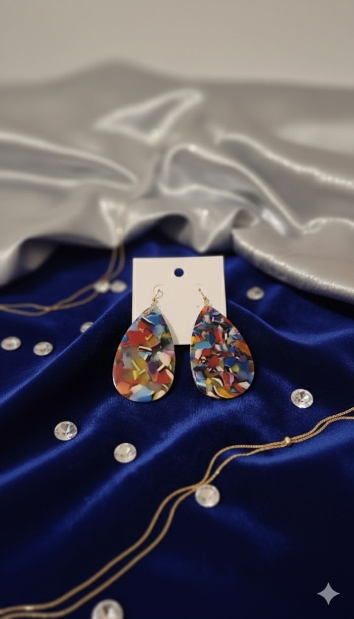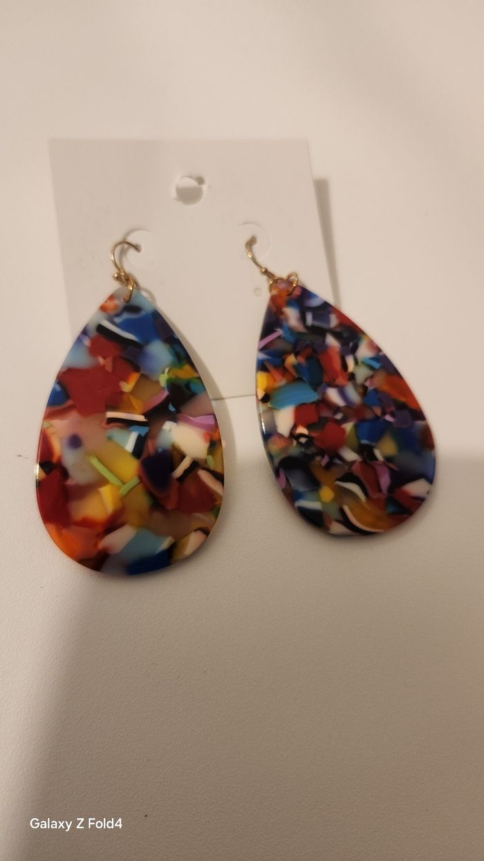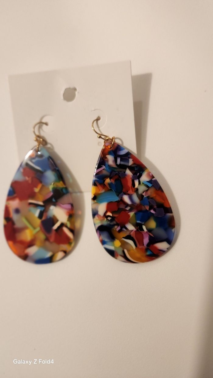 matière : 🌿 résine légère (façon écaille) et crochets en métal doré
