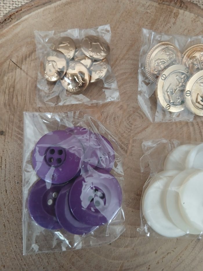 Lot de 4 sachets de boutons. D'autres breloques perles pompons boutons biais tissu ect de dispo ds mon dressing n'hésitez pas à jeter un coup d'œil ou à me demander
