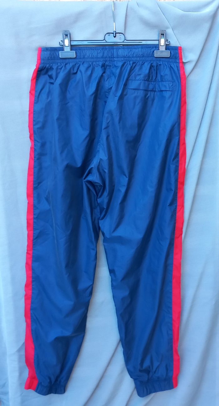 Bas élastique à la taille et cordon de serrage, 2 poches devant et 1 au dos avec fermeture bouton pression, bandes latérales rouge, tissu principale de coloris bleu marine, bas de jambe large élastique, entièrement doublé, composition extérieur 100% polyamide doublure 100% polyester, marque présente sur étiquette et brodée sur le pantalon (FA190306SIV L BV3025-410 193146353274) largeur taille 40cm longueur taille-bas 101 cm entrejambe-bas 74 cm Possibilité d'offre en lots. Envoi rapide et soigné