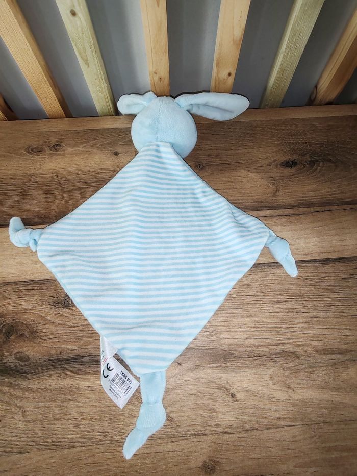 Lapin plat bleu blanc rayé grelot TOM & KIDDY Tbe Étiquette marque présente 9.90 euros Envoi en relais