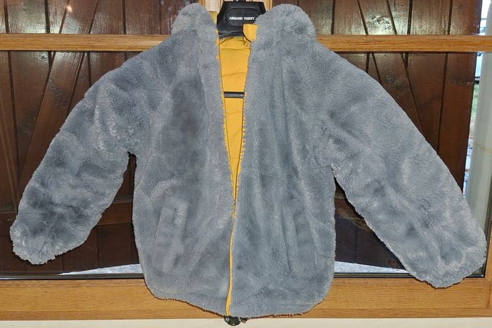 Manteau marque Okaidi fille couleur moutarde réversible taille 6 ans