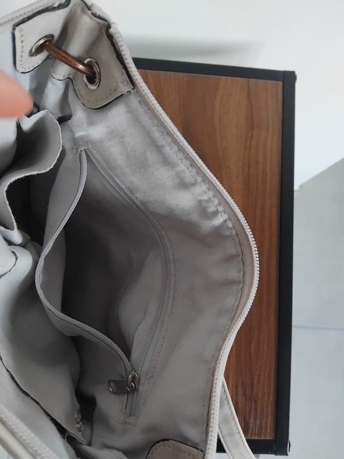 A l' intérieur il y une 3 poches donc une avec fermeture éclair.