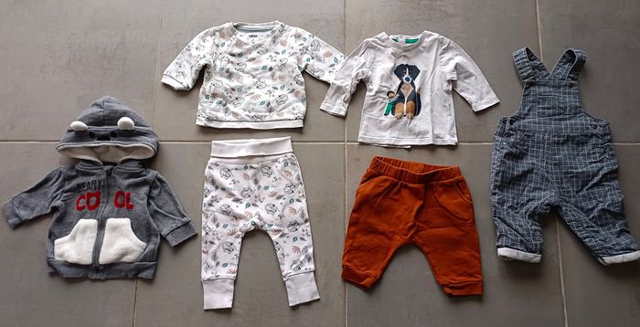 🚨Lot indissociable⛔ Je ne réponds plus aux demandes d'achat à l'unité 1 salopette Obaïbi 1 tee-shirt à manches longues chien Obaïbi 1 ensemble Gémo 1 pantalon brique 1 veste à capuche ourson #3moisgarçoncamilled974 #Obaïbi
