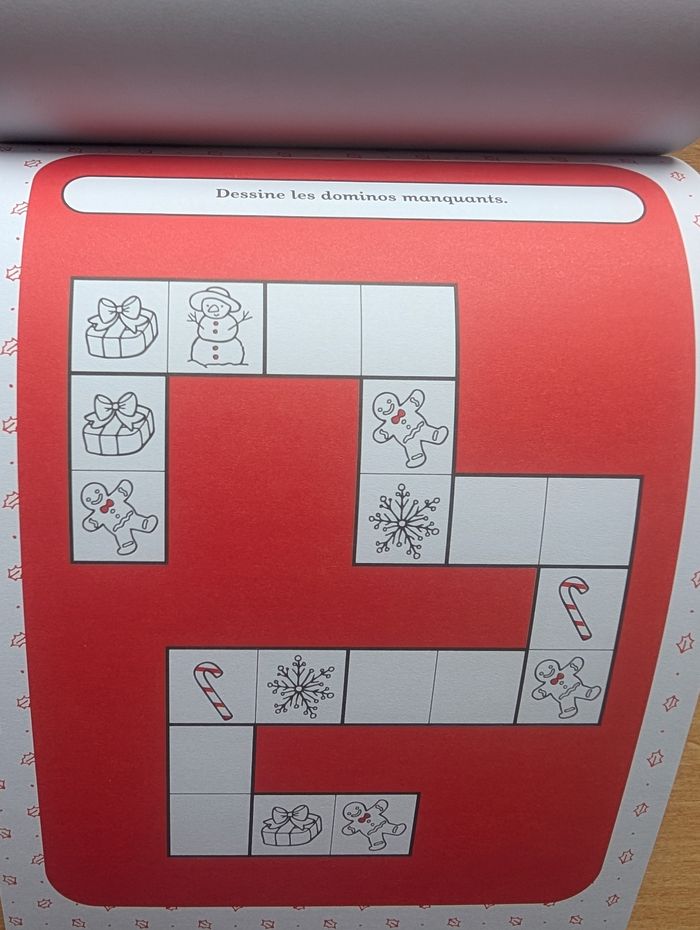 Cahier d'activités sur le thème de Noël, idéal pour occuper les enfants pendant les fêtes de fin d'année ! Il contient 48 jeux variés pour s'amuser et apprendre. Contenu : Dessins, dominos, labyrinthes, coloriages, relier les points, trouver les différences, etc. Neuf, aucune page n'a été utilisée.