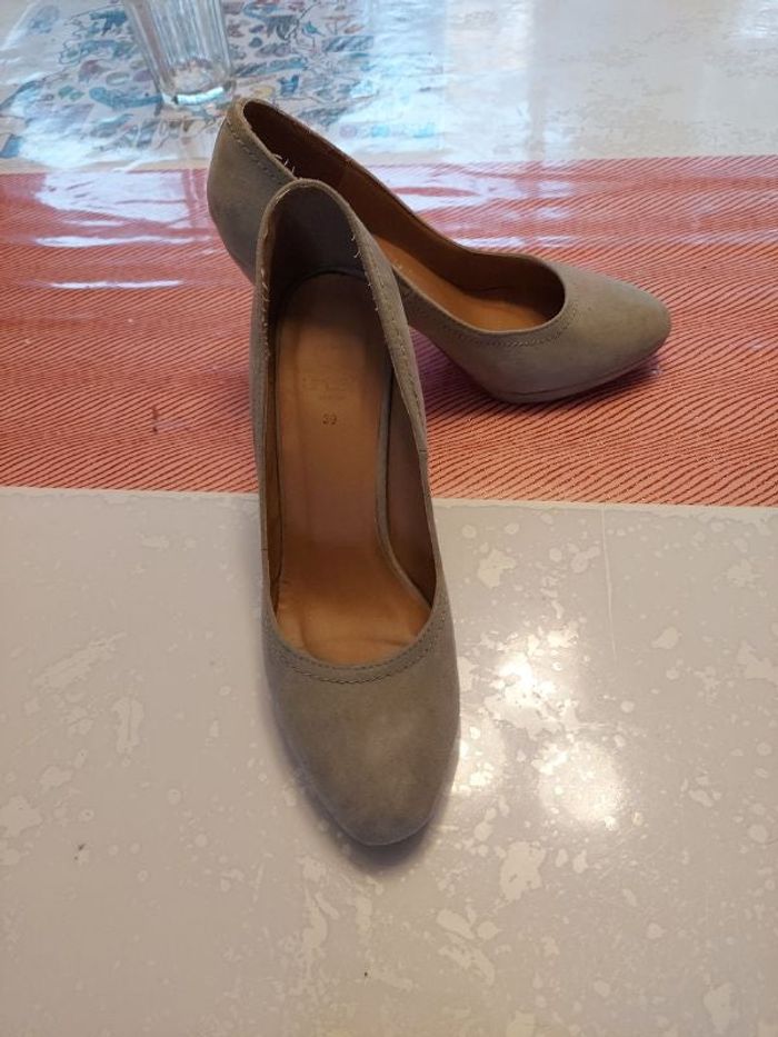 Paire d escarpins dessus toucher daim mais synthétique, gris, un defaut semelle intérieure visible en photo mais ne gene pas dessous le pied, en tbe #chaussurefemme39_mondressing11_bv