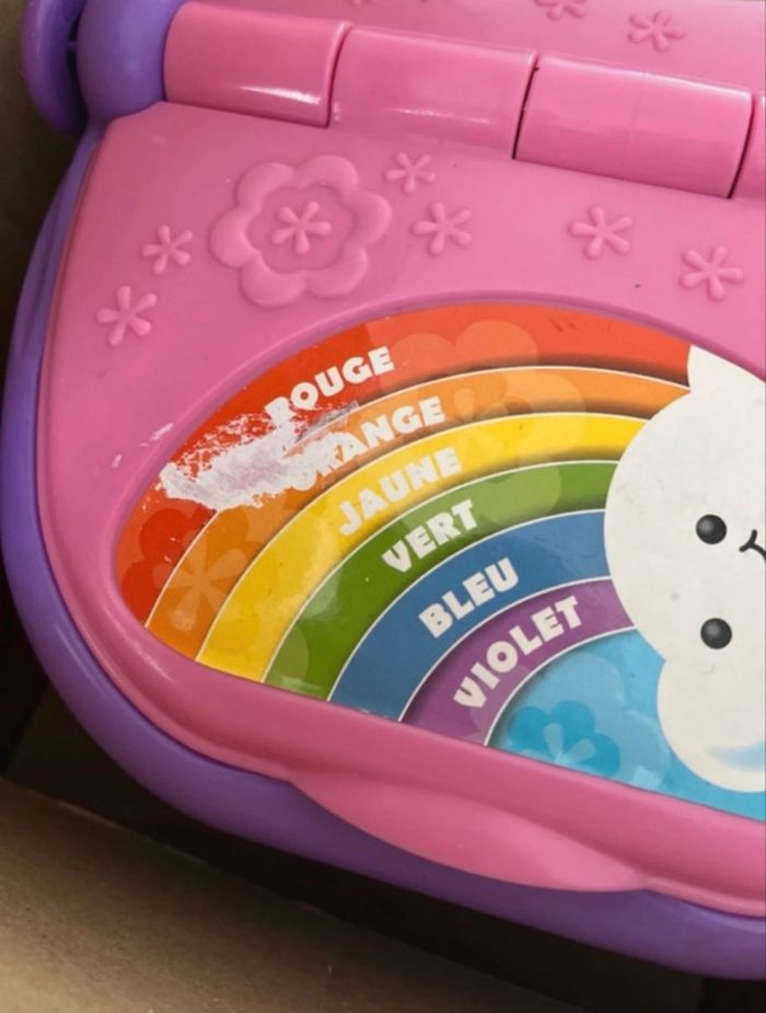 Manquent simplement les 2 gobelets originaux et malheureusement l’étiquette arc en ciel 🌈 est légèrement effacé (lorsque j’ai enlevé l’étiquette de ma dernière braderie qui indiquait le prix 🤦♀️)