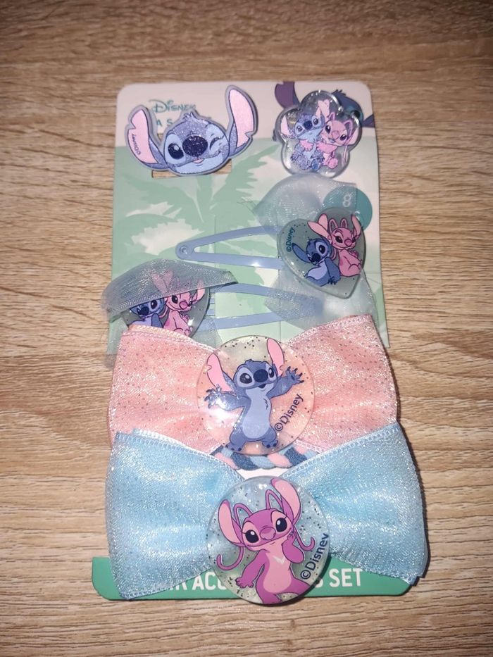 Ensemble d’accessoires pour cheveux comprenant des barrettes et des noeuds ornés des personnages Stitch et Angel de Disney Neuf