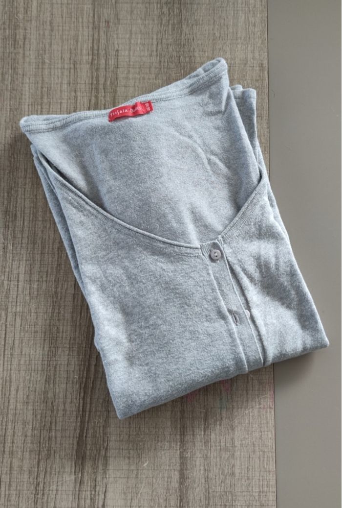 Gilet à manche longue de couleur gris, de la marque Tissaia et de taille 46|48. Gilet en bon état pour femme. Expédition dès le lendemain Tour de poitrine 98 cm Tour de taille 94 cm Largeur épaule 46 cm Longueur manche 60 cm Longueur totale 60 cm Prix 4€