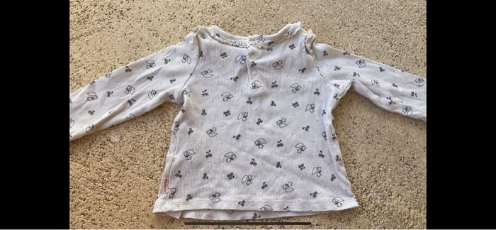 Tee shirt sergent major Blanc imprimé écureuil et fleurs noir Taille 18 mois 80 cm