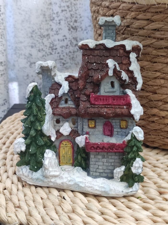 Décoration de noël pour village de Noël, une maison " château ". Dimensions Hauteur 15cm LxL du dessous 11,5x9,5