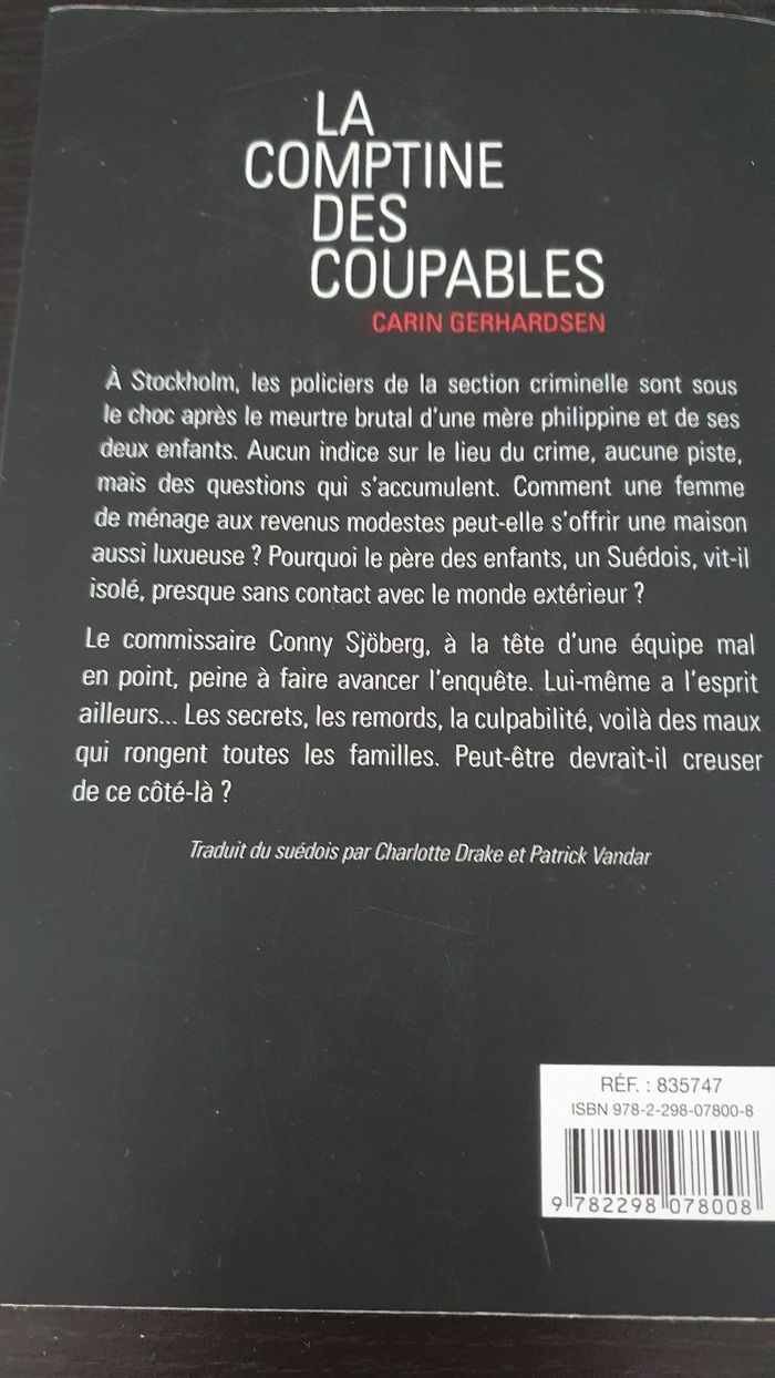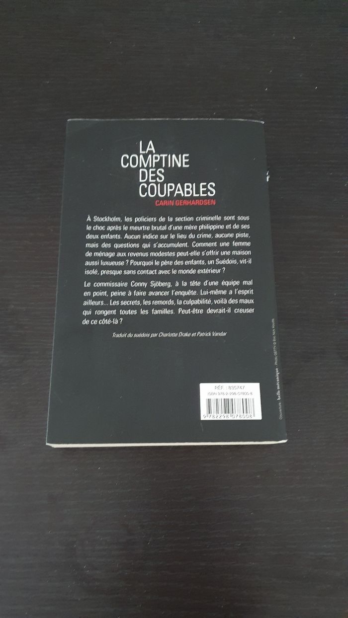 Je vends ce roman policier "La comptine des coupables" de Carin Gerhardsen. Très légèrement abimé sur la tranche, voir photo