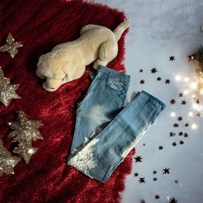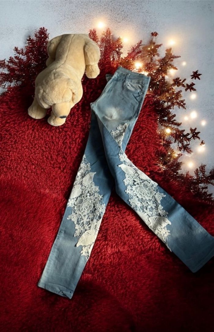Jeans délavé avec dentelle