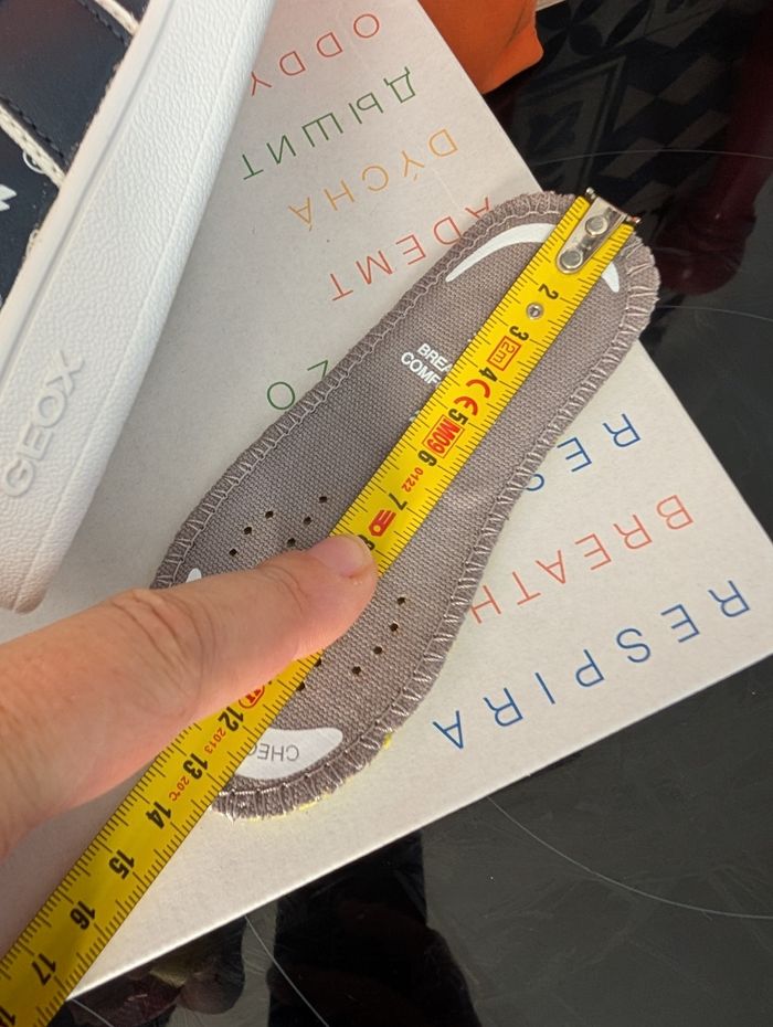 Je vends cette paire de baskets Geox pour enfant, taille 21, en parfait état neuf avec étiquette, dans son emballage d'origine. Fermeture scratch et lacets élastiques. Souples, semelle souple, mesures sur la photo pour donner des idées. - Type de produit : Baskets - Univers : Enfant - Marque : Geox - Pointure : 21 - Couleur : Marine / blanc - Matière : cuir synthétique Très belles et confortables. N'hésitez pas à me contacter pour plus d'informations !