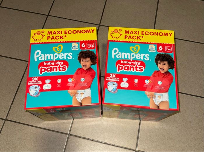 2 cartons de couches culottes Pampers baby dry T6/74 couches