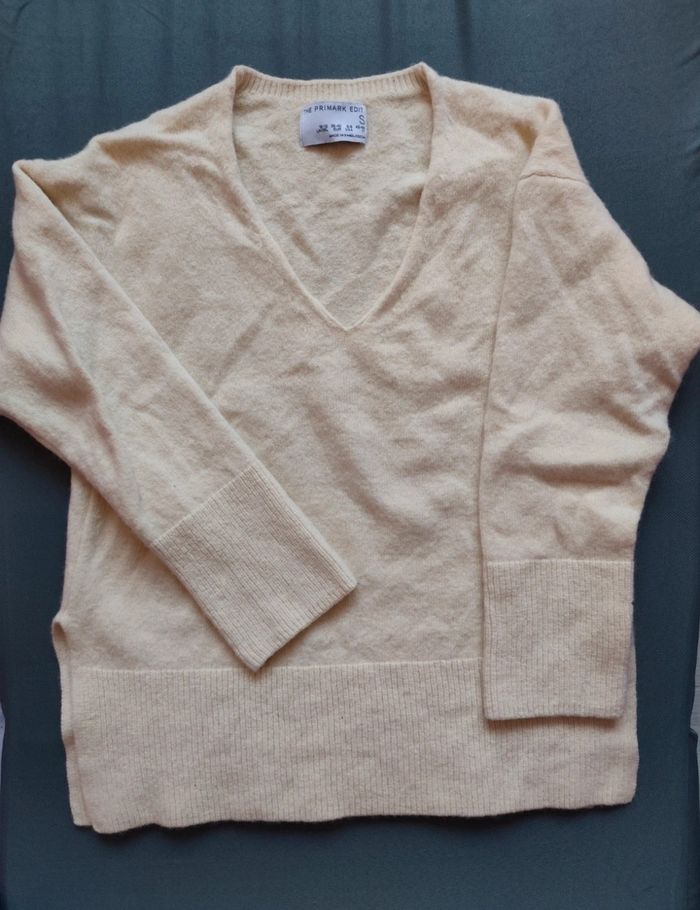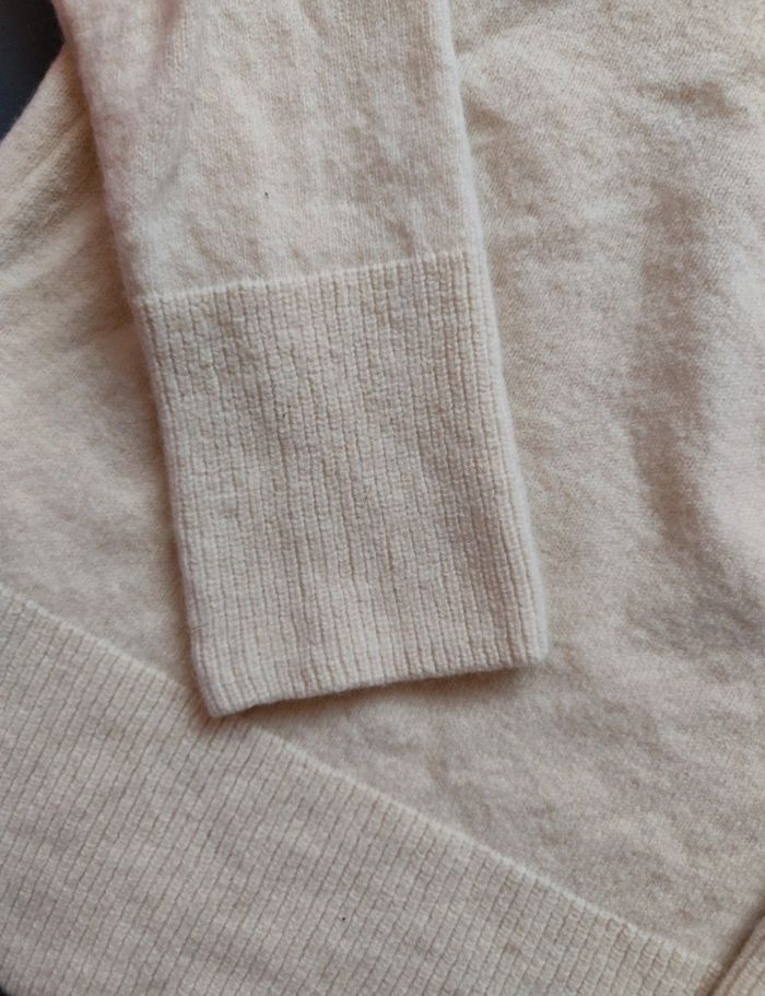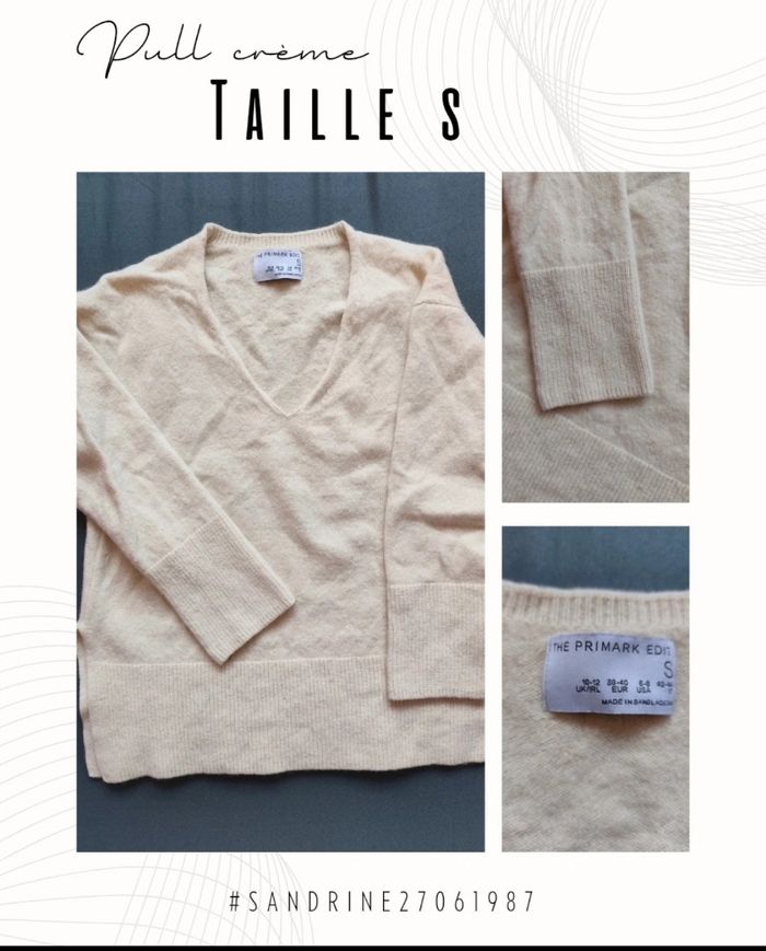 🌷 Descriptif du vêtement 🌷 Pull crème col V. Manches 3/4. Très doux. Très bon état. Taille S Matière : 80% laine