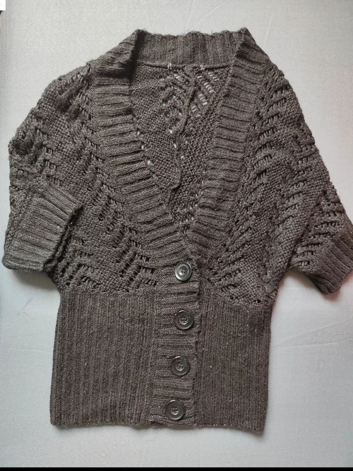 🌷 Descriptif du vêtement 🌷 Gilet noir manches courtes. Très bon état. Étiquette taille retirée. Correspond à un 36.