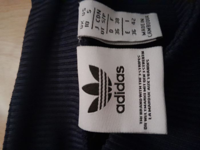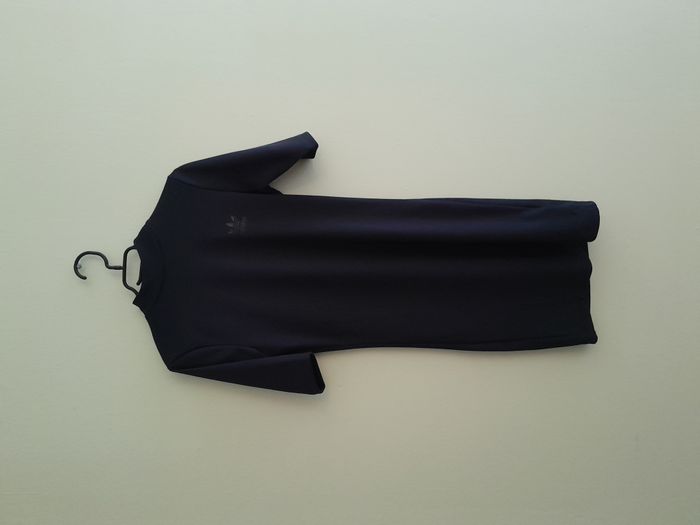Vends 1 Robe Marque Adidas Originals Edition limitée The Brand with the 3 Stripes Maille côtelée Col montant. 100% Polyster Couleur Navy Taille M/38 Convient plutot à une Taile S Epaules à épaules 35 cm Longeur totale 89 cm Prix 45 euros
