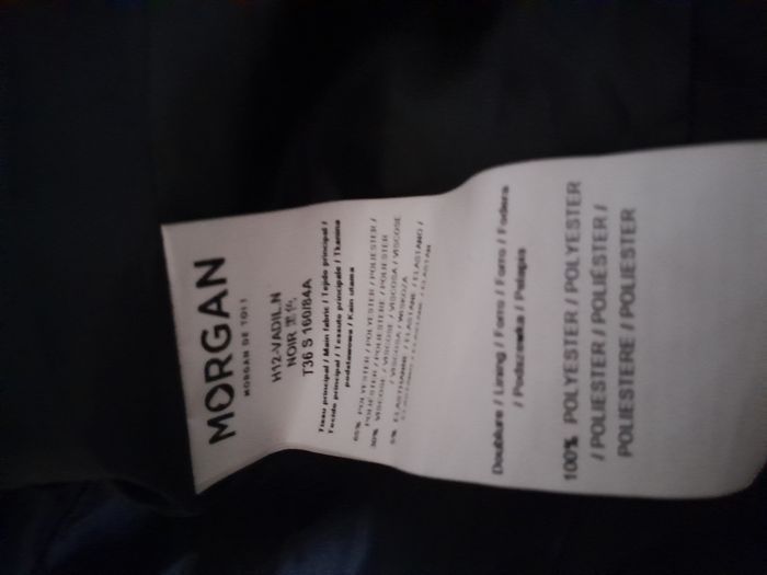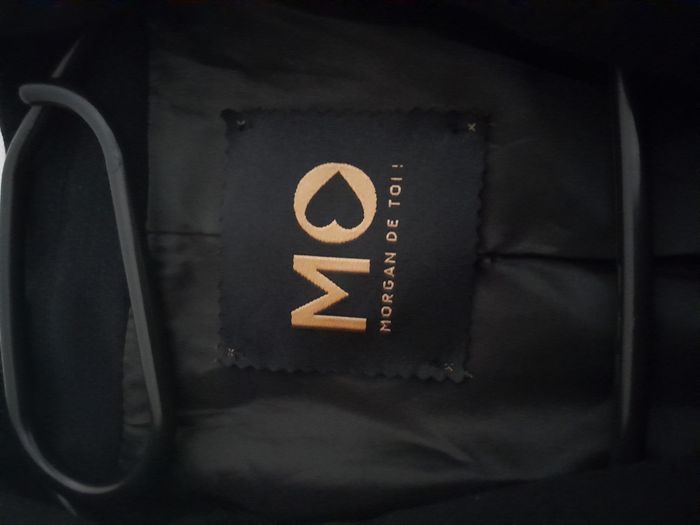 Vends 1 Manteau Marque Morgan de toi Achetée à Saint Malo en boutique Détails: 2 fausses poches 1 poche avec plaque dorée écrit Morgan Boutons dorés avec inscription Morgan de toi Tissus Principal: Polyster 65% Viscose 30% Elasthanne 5% Tissu intérieur: Polyster 100% Taille S/36 Prix 60 euros
