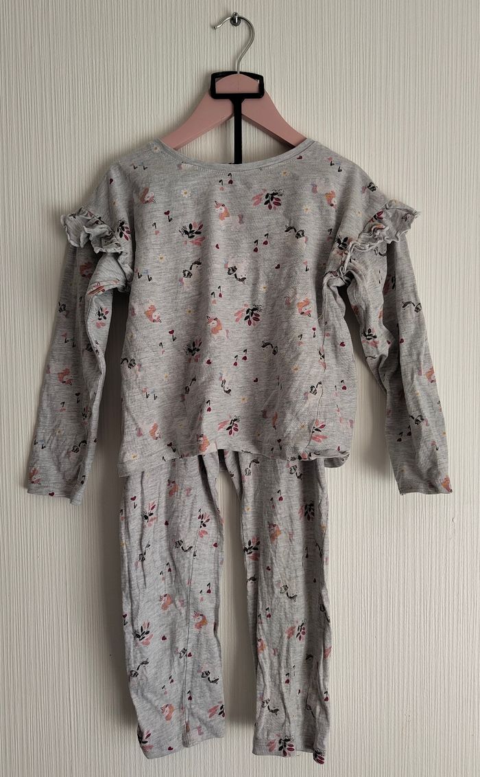 *Pyjama 2 pièces, imprimé licorne, fleurs & petit cœurs. Volant au niveau des épaules.