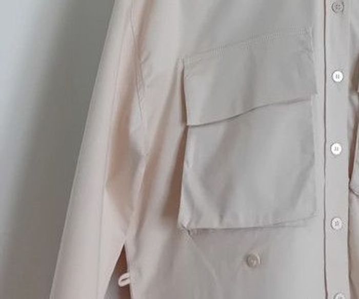 Je vends 1 chemise De la Marque Zara Idéale pour cet automne Détails: Couleur Taupe/ Beige 2 Grosses Poches plaquées Grandes manches oversize Se porte Oversize ou serrée Taille S/36 Composition: 97 % Coton 3 % Elasthanne Prix 25 euros