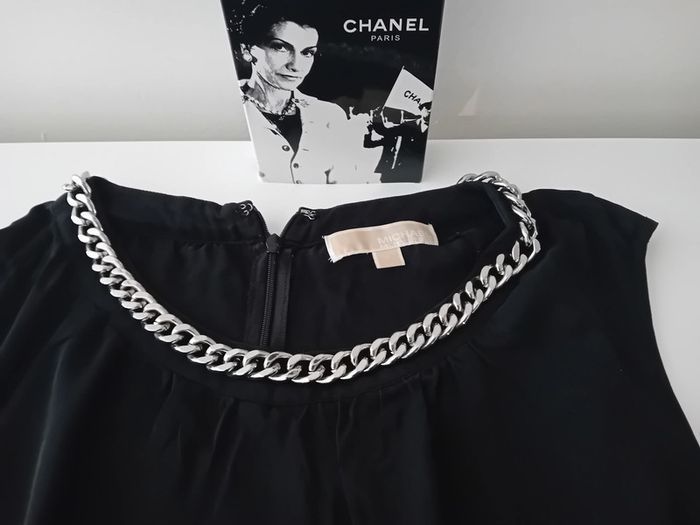Vends 1 Blouse Marque Michael Kors Trés féminine et chic Tour du coup en chaine argentée 100% Soie Noire Taille S/36 Prix 30 euros