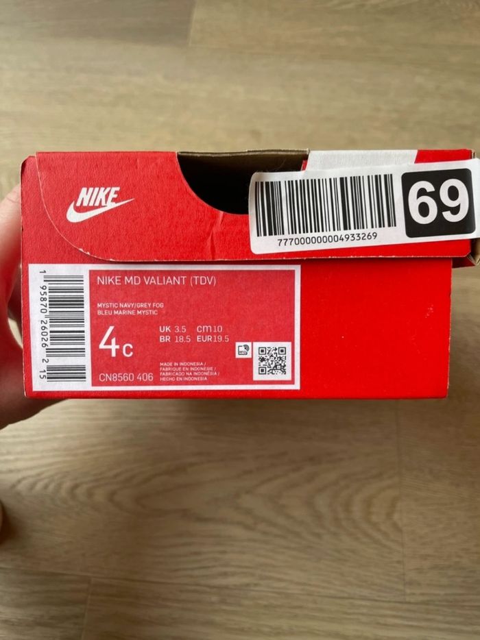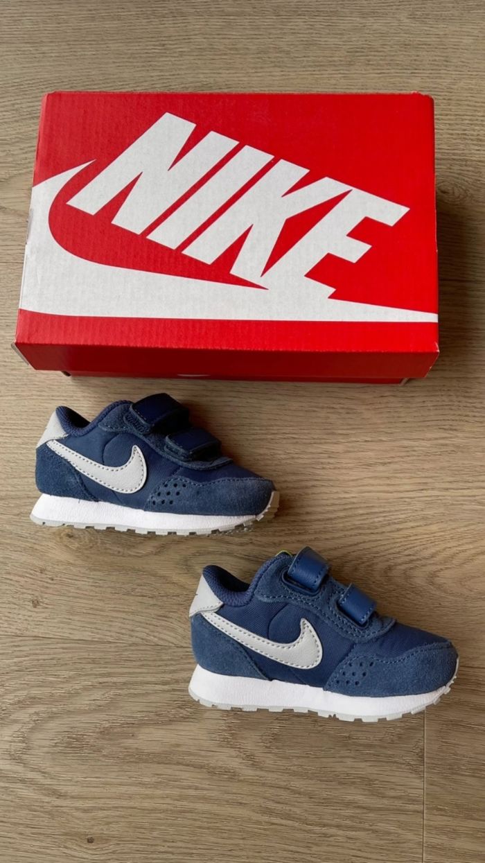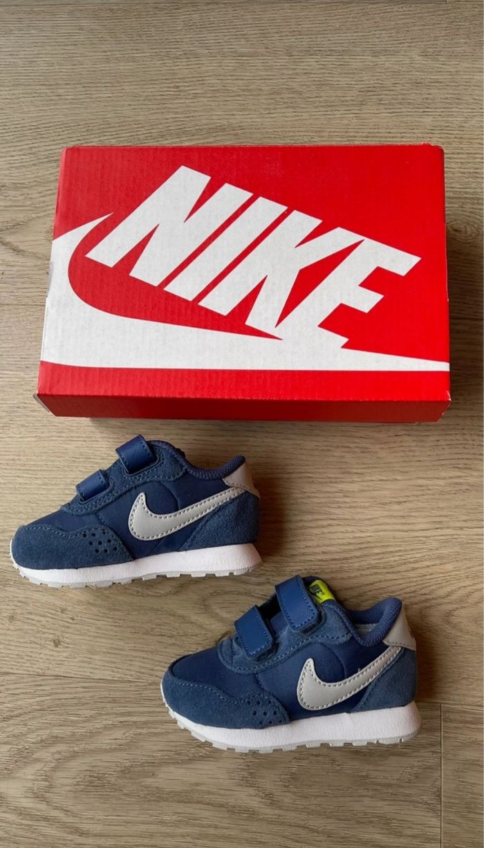 Basket Nike pour bébé - avec scratch Modèle Md Valiant Bleu marine et Gris Taille 19,5 Jamais porté, neuf avec boîte