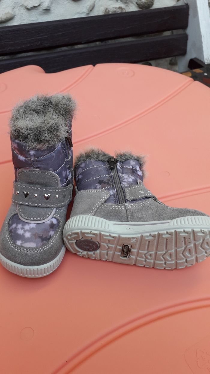Bien chaudes, fourrées, daim et Goretex Portées 2 fois l'hiver dernier, très bon état Valeur initiale 45e. Marque Primigi
