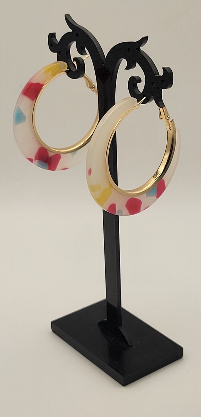 BOUCLES D'OREILLES ANNEAUX CREOLES MARBREES MULTICOLORE ! NEUF