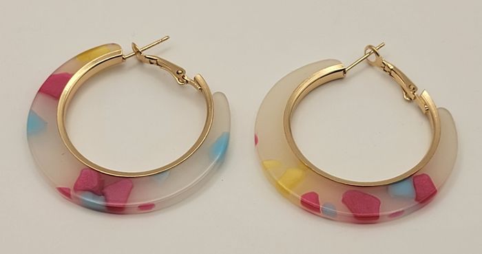 BOUCLES D'OREILLES ANNEAUX CREOLES MARBREES MULTICOLORE ! NEUF - photo numéro 1