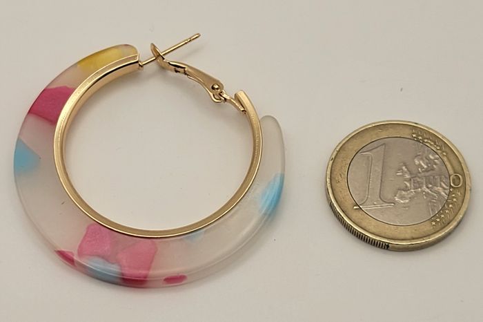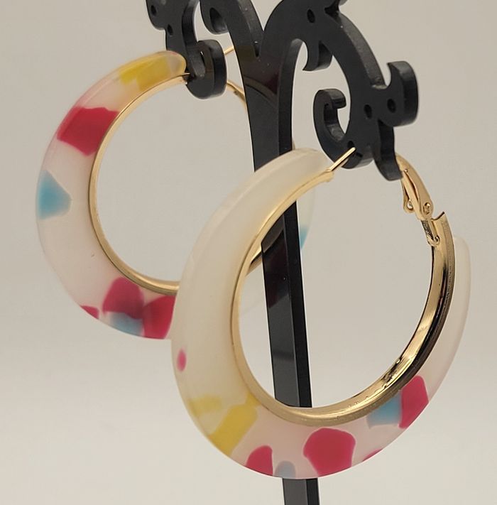 BOUCLES D'OREILLES ANNEAUX CREOLES MARBREES MULTICOLORE ! NEUF - photo numéro 3