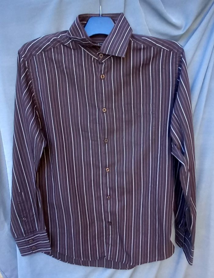 - Chemise cintrée Ted Baker london manches longues, tissu imprimé coloris bleu-blanc-noir, Boutonnage (2 boutons supplémentaires), composition 100% coton, largeur épaules 41 cm - aisselles 51 cm, Longueur épaule-bas 65 cm- aisselles-bas 41 cm Longueur manches 63 cm Article porté 1 fois - Chemise Jules collection manches longues, tissu imprimé à rayures coloris marron, 1 poche, Boutonnage (2 boutons supplémentaires), composition 100% coton, largeur épaules 45 cm - aisselles 53 cm, Longueur épaule-bas 64 cm- aisselles-bas 43 cm Longueur manches 63 cm Article porté 1 fois Pas d offre en lots. Envoi rapide et soigné