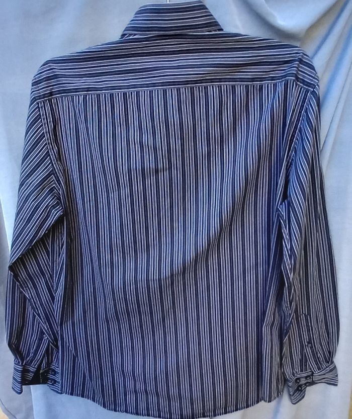 Chemise manches longues, tissu imprimé à rayures coloris noir, Boutonnage, composition 100% coton, largeur épaules 47 cm - aisselles 60 cm, Longueur épaule-bas 63 cm- aisselles-bas 40 cm Longueur manches 62 cm Article porté 1 fois Pas d offre en lots. Envoi rapide et soigné Merci de vérifier les dimensions si choix du relais Vinted Go #sandrinekriti_L