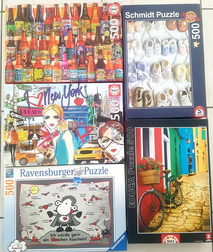 LOT de 5 puzzles en 500 pièces TOUS COMPLETS (voir photos des puzzles montés),